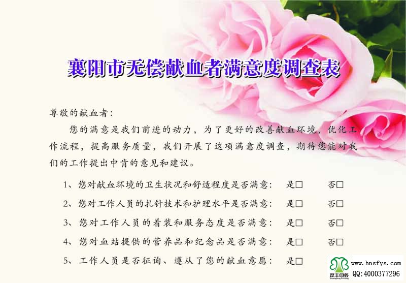 河南印刷廠:無償獻(xiàn)血者滿意度調(diào)查表